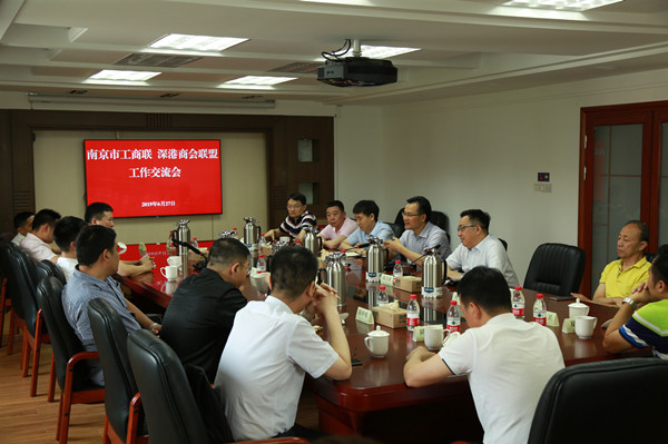 6月27日,深港商会联盟企业家代表团在深圳市南京商会会长彭鹏带领下一行22人专程到访南京市工商联。市委统战部副部长、市工商联党组书记毛卫华,市工商联党组成员、副主席钱卫冰接待代表团一行,并与代表团成员举行工作座谈。