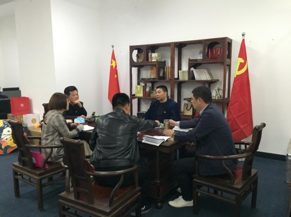2020年4月18日,天台南京流动党支部于商会办公室召开支委会议。全体同志佩戴党徽持党员证签到,会议讨论支部4月党日活动议程安排;讨论关于七·一活动安排;并由支委对范优敏申请入党进行谈话;支委互相交流发言;最后谢孝江书记总结发言 。