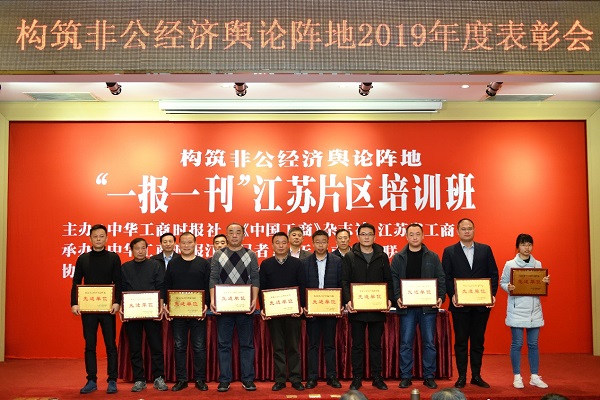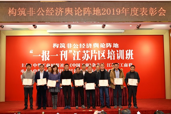 培训期间,对2019年度“构筑非公经济舆论阵地”58家先进单位和39名先进个人进行了表彰。南京市工商联、南京市江宁区工商联、溧水区工商联、六合区工商联、秦淮区工商联、鼓楼区工商联、栖霞区工商联、浦口区工商联、玄武区工商联和雨花台区工商联荣获先进单位。南京市工商联丁雯、江宁区工商联薛琼、溧水区工商联邰正荣、六合区工商联李荣弟、浦口区工商联吉中连荣获先进个人。(丁雯)