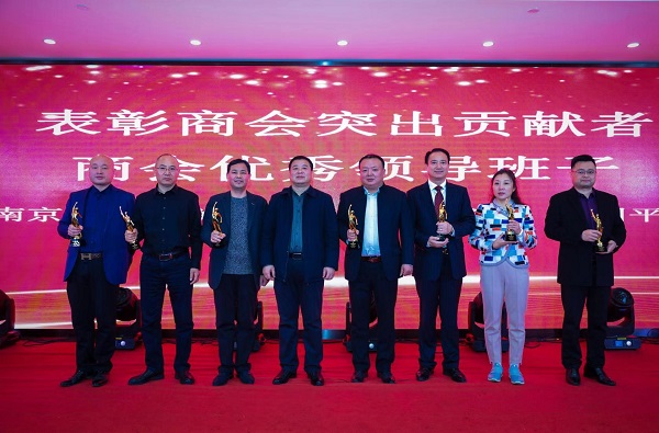 会议表彰了为商会做出突出贡献的领导班子成员和优秀会员代表。(会员处)