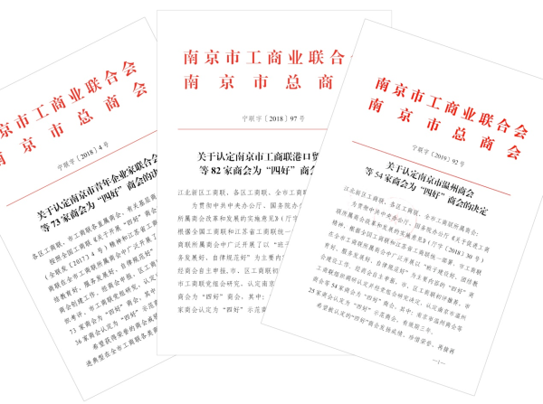 “四个结合”确定原则。对于“四好”商会建设,南京市工商联确定了“四个结合”的工作原则。即,与“五好”区工商联建设相结合;与“星级商会”“五有五好”基层商会建设相结合;坚持典型引路与整体推进相结合;坚持工商联加强指导与商会发挥主体作用相结合。