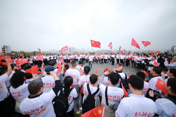2021年4月23日,南京解放纪念日。中华门古城墙平台上,来自南京市百家商会的近千名民营经济人士,开展“重温解放史、健行胜利路”主题徒步活动。随着徒步人群在城墙上行进,音乐声响起,两名领唱者缓缓步入,饱含深情放声歌唱《唱支山歌给党听》和《没有共产党就没有新中国》。一时间,这场红歌快闪活动让参与徒步的人从四面八方聚拢来,齐声歌唱,将现场氛围推向高潮。