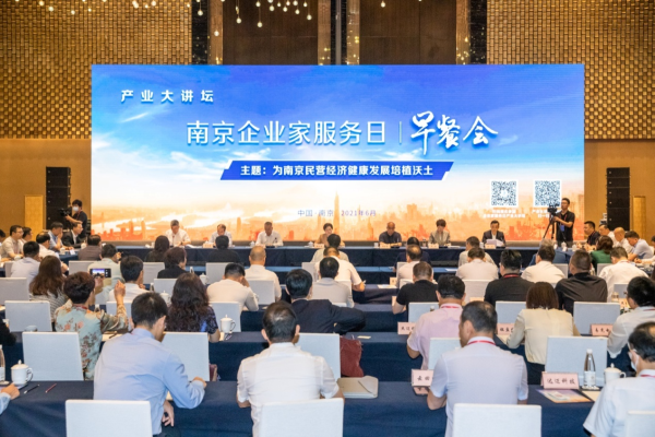 (2021年6月18日,由南京市工商联参与承办,以“为南京民营经济健康发展培植沃土”为主题的南京企业家服务日早餐会·产业大讲坛举行。)