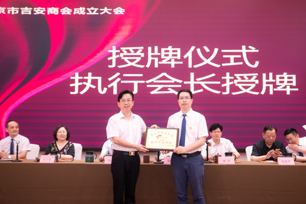 杨浩、徐年春等为商会揭牌,并分别为商会领导班子颁牌。会议听取了商会筹备工作报告,审议通过了《南京市吉安商会章程(草案)》、《南京市吉安商会会费标准及缴纳办法》,选举南京瀚宇物业服务有限公司总经理郭枧根为商会会长、南京拉尔夫创业投资有限公司总经理陈冬华为商会执行会长、江苏宁创律师事务所副主任袁爱萍为商会秘书长。
