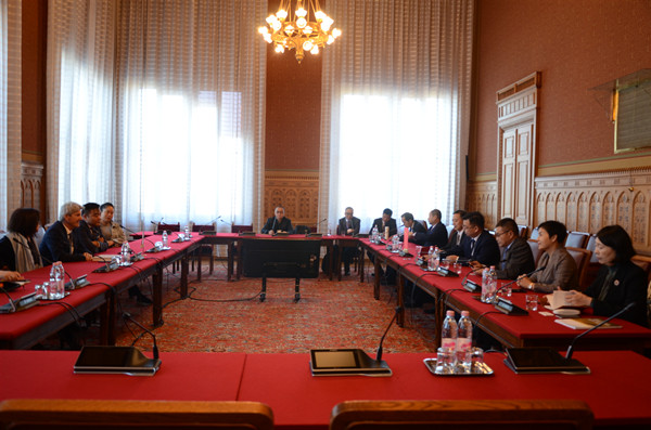 在匈牙利期间,代表团与匈牙利贸易促进局、投资经贸署进行座谈交流,受到匈中友好协会经济分会联席主席米可·山道尔先生以及贸易促进局和投资经贸署相关负责人的热情接待。米可·山道尔先生代表匈方诚挚欢迎南京代表团的到来,并介绍了匈中建交70年来经济、文化等各方面的友好合作交流情况,也介绍了匈牙利贸易促进局、投资经贸署的基本情况。